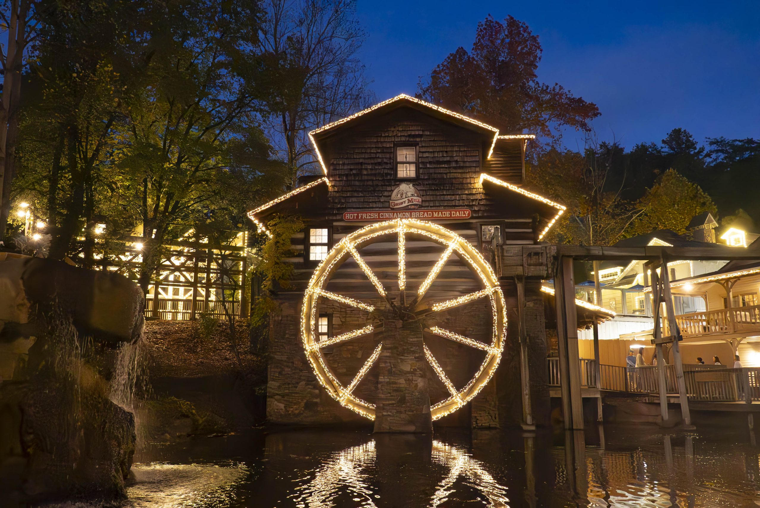 Glacier Ridge returns to fill Dollywood’s Timber Canyon, Wildwood Grove, Wilderness Pass and Upper Craftsman’s Valley with an expansive and vibrant arctic display sure to inspire, dazzle and delight guests. The Christmas Reflections lights in Rivertown offer a glow as night descends, where the pond shines brightly as five brilliantly decorated trees shimmer to life with their lights reflecting onto the water below. Country Fair has transformed into a sweet treat as Peppermint Valley features sparkling red and white candy cane lights that will delight kids and kids at heart with their colorful display.