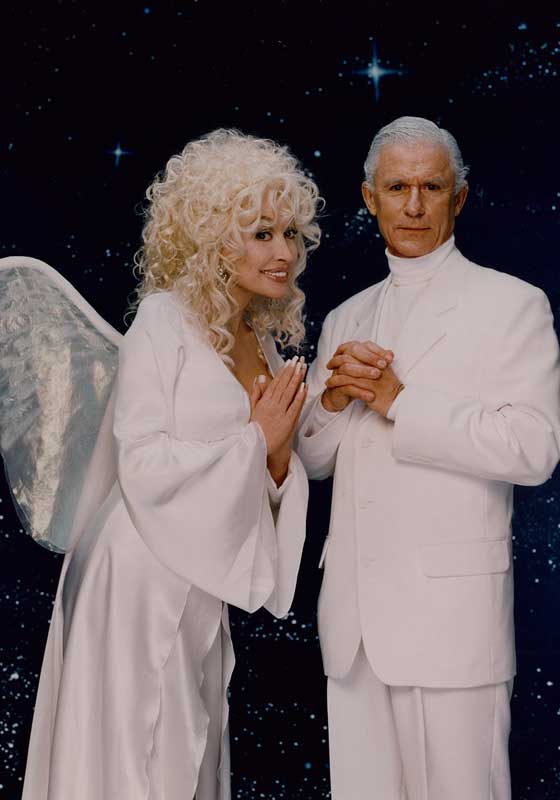 Dolly starred in "Unlikely Angel," a made-for-television film, as Ruby Diamond, a selfish country singer who is granted a second chance at salvation by St. Peter (Roddy McDowall) after she dies in a car accident. If Ruby is able to help reunite and heal a suburban family suffering after the passage of their mother (by midnight on Christmas Eve) she will be given her wings. If she fails to reunite the family, Ruby would head for far smokier shores.