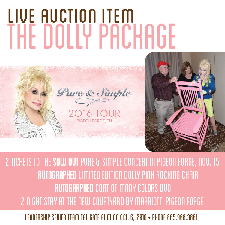 Leadership Sevier will auction off two tickets to Dolly's Pigeon Forge concert, an autographed, limited edition Dolly pink rocking chair and more at their live auction event on Oct. 6.